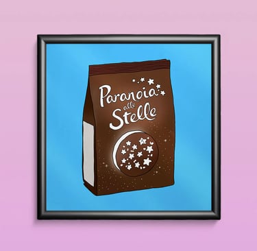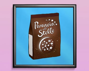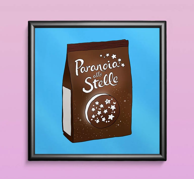 “Paranoia a Stelle” è più sottile e poetico, ideale per chi ama l’ironia discreta. Sta benissimo in uno studio, in camera da letto o in un angolo lettura.